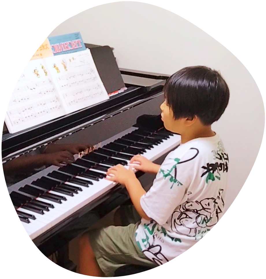 メカニック(手の運動機能)とテクニック(演奏技術)をバランス良く指導。つまずきやすい練習曲も、内容や意図を汲み取ることで自ら楽しく取り組めるようになり、本格的なピアノ曲につながる土台を作ります。