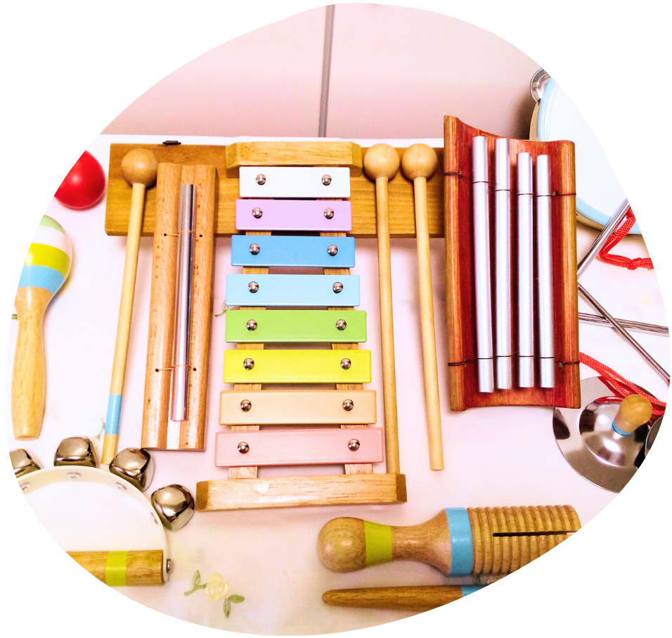 グロッケン、トライアングル、カスタネットなども幅広く活用し、リズム感や身体感覚を養います。